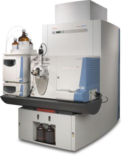荣获2004年度世界研究与发明技术**奖(R&D 100 Award)的LTQ-FT线性离子阱回旋共振质谱仪是具有崭新技术观念的强有力的蛋白质组学分析系统。在真正液相色谱/质谱在线连接的工作状态下,得到超高分辨率、精确质量数和多级质谱分析数据并同时满足高通量常规分析的要求。该系统可以从多个角度进行蛋白质组学研究,其ECD和IRMPD裂解源可以得到和CID裂解源相补充的碎片离子,降低假阳性率和提高可信度,并可以从Top Down的方法进行蛋白质分析。这两种源也是翻译后修饰(PTM)未知肽序列测定(De Novo)研究的重要工具。除主要应用于蛋白质组学,LTQ FT还可用于分析如原料油中复杂混合物、分子量极靠近的相关成分这样的艰难任务。
